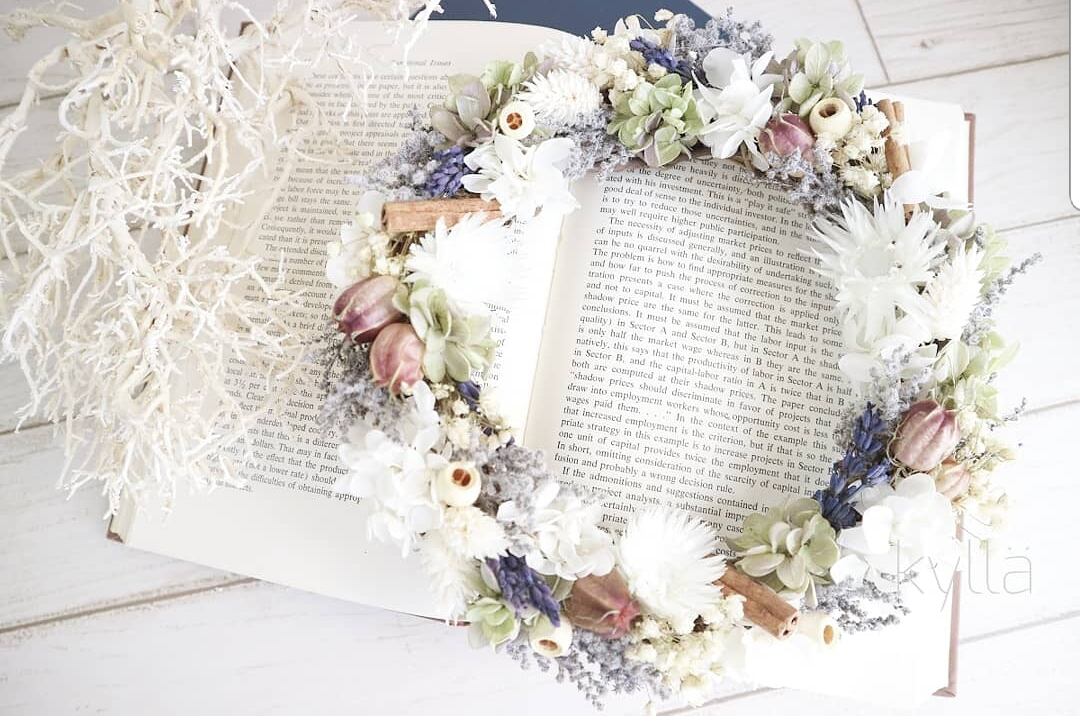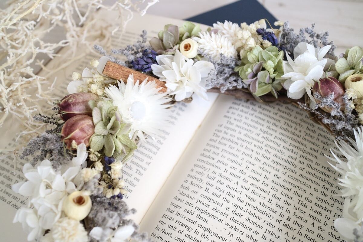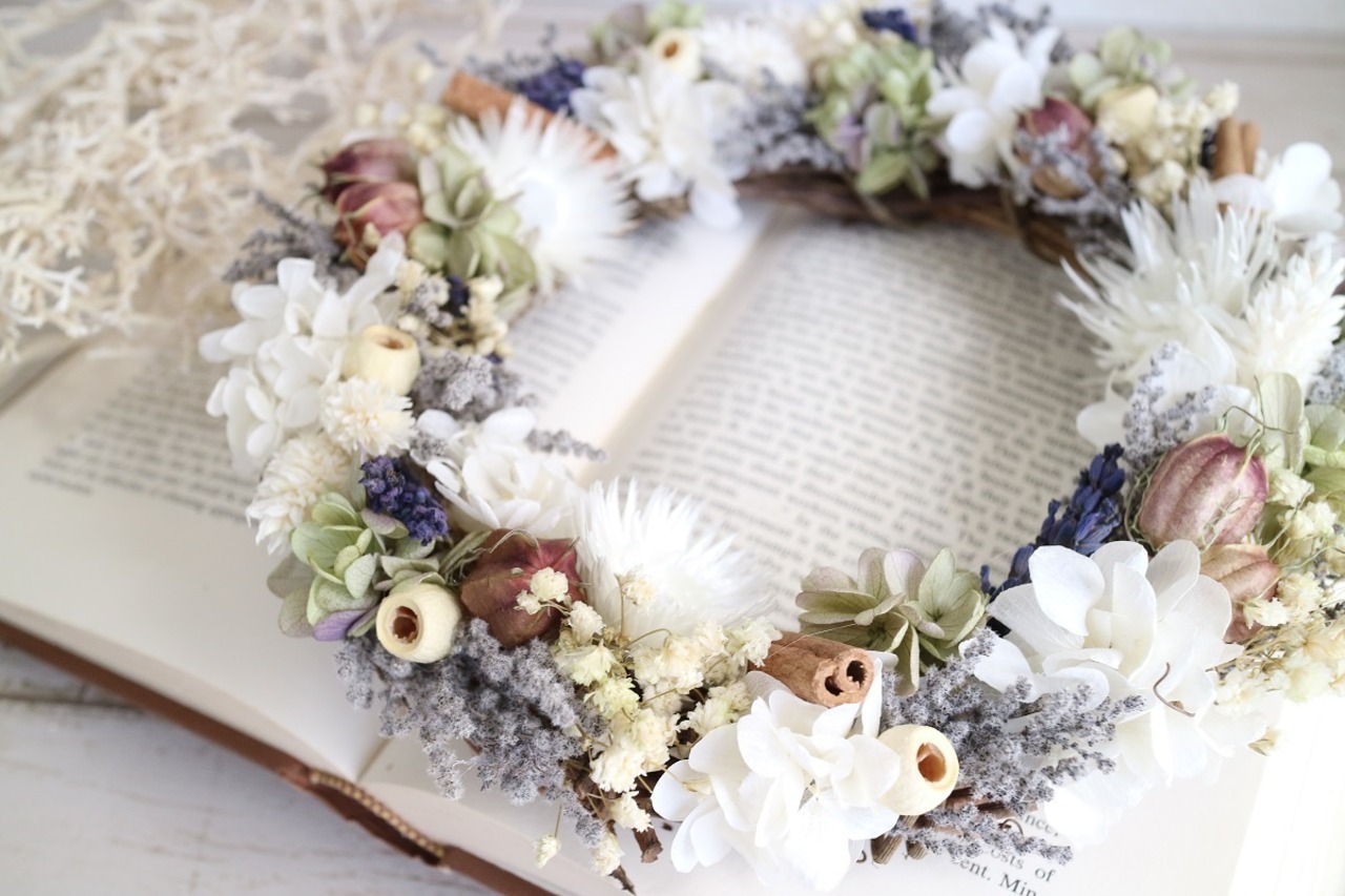 プリザーブドフラワー:アジサイ、カスミソウ、ラベンダーなど